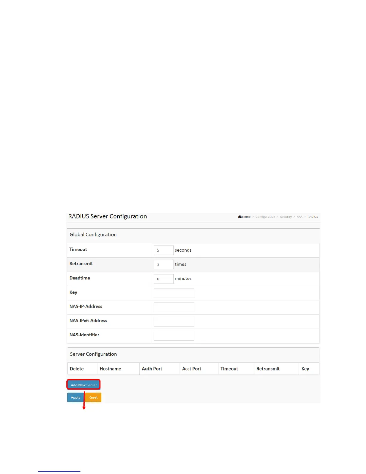 Figure 2-5.3.1: The RADIUS Authentication Server Configuration