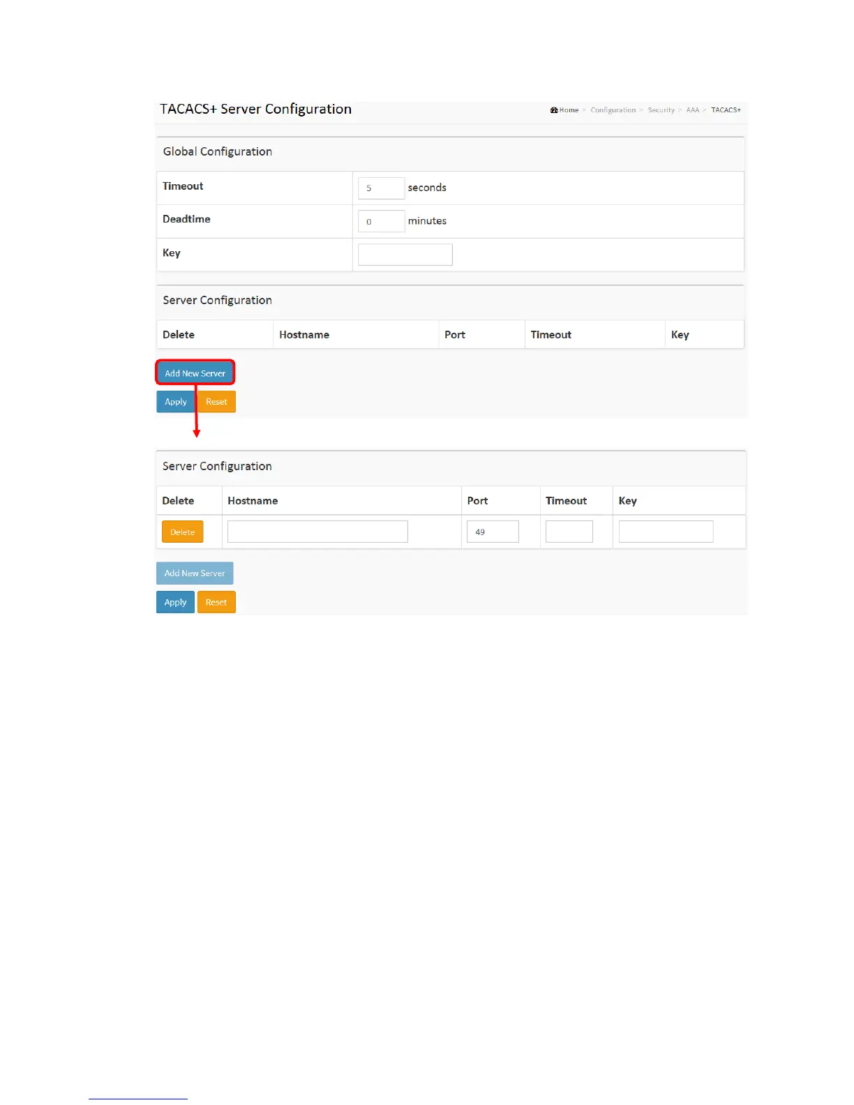 These setting are common for all of the TACACS+ servers.