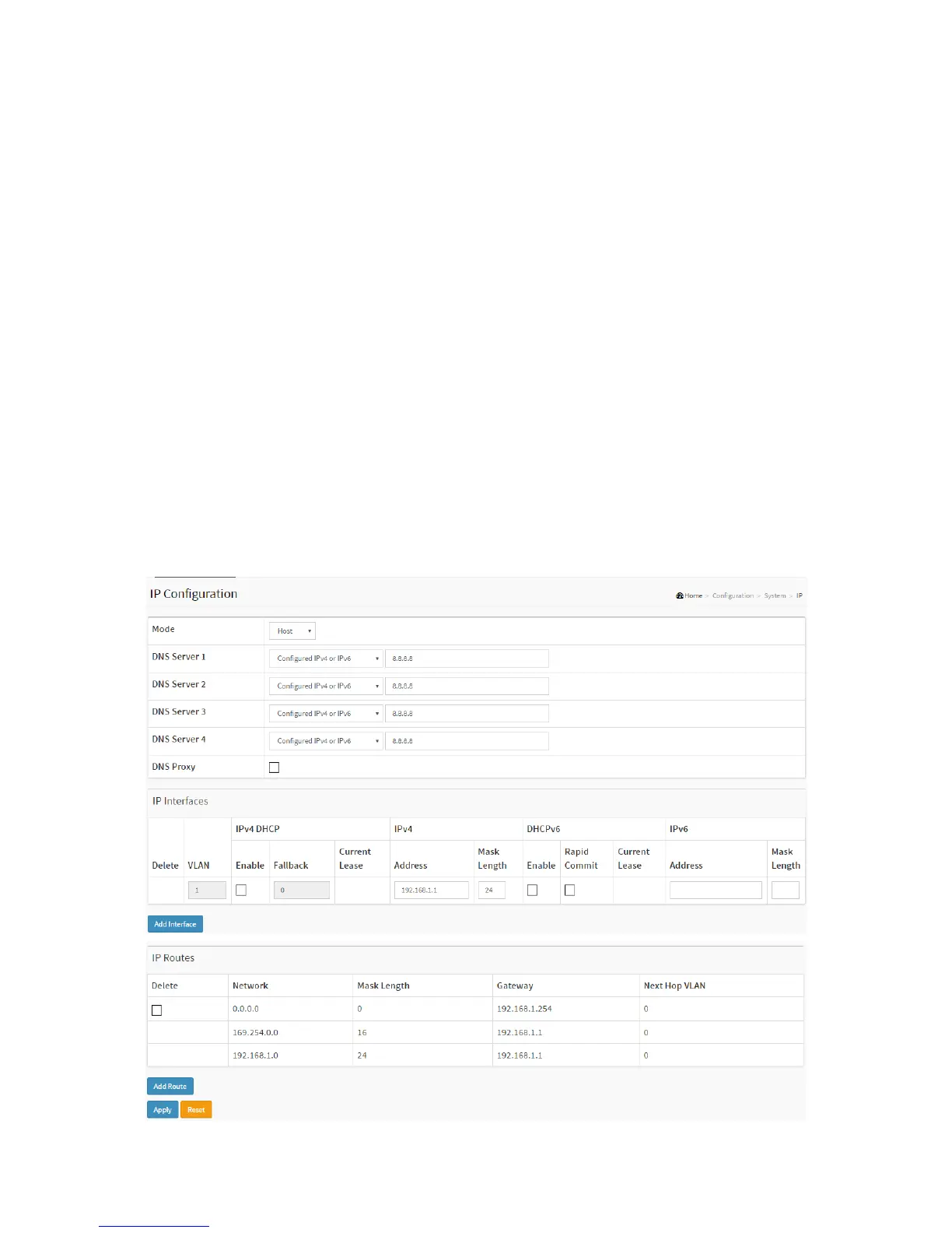 1. Click Configuration, System, IP.