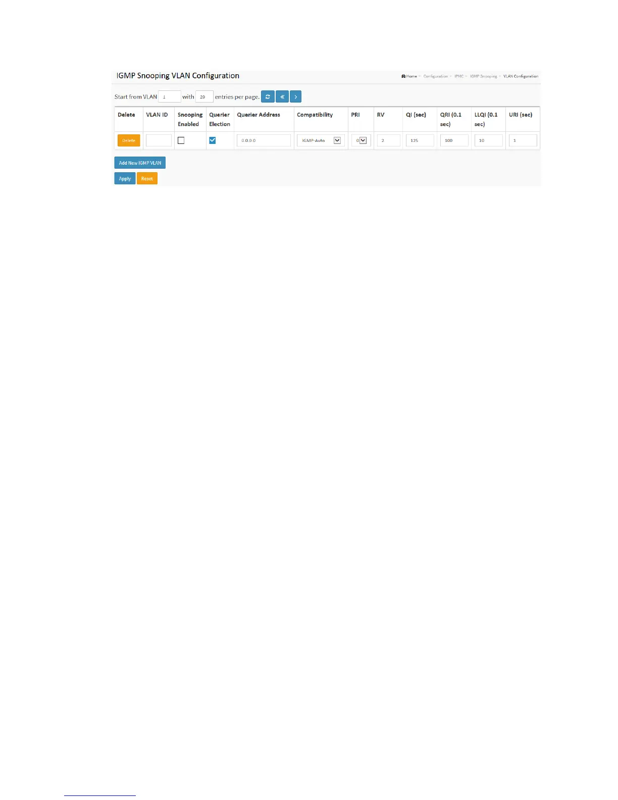 Enable the per-VLAN IGMP Snooping. Only up to 32 VLANs can be selected. .