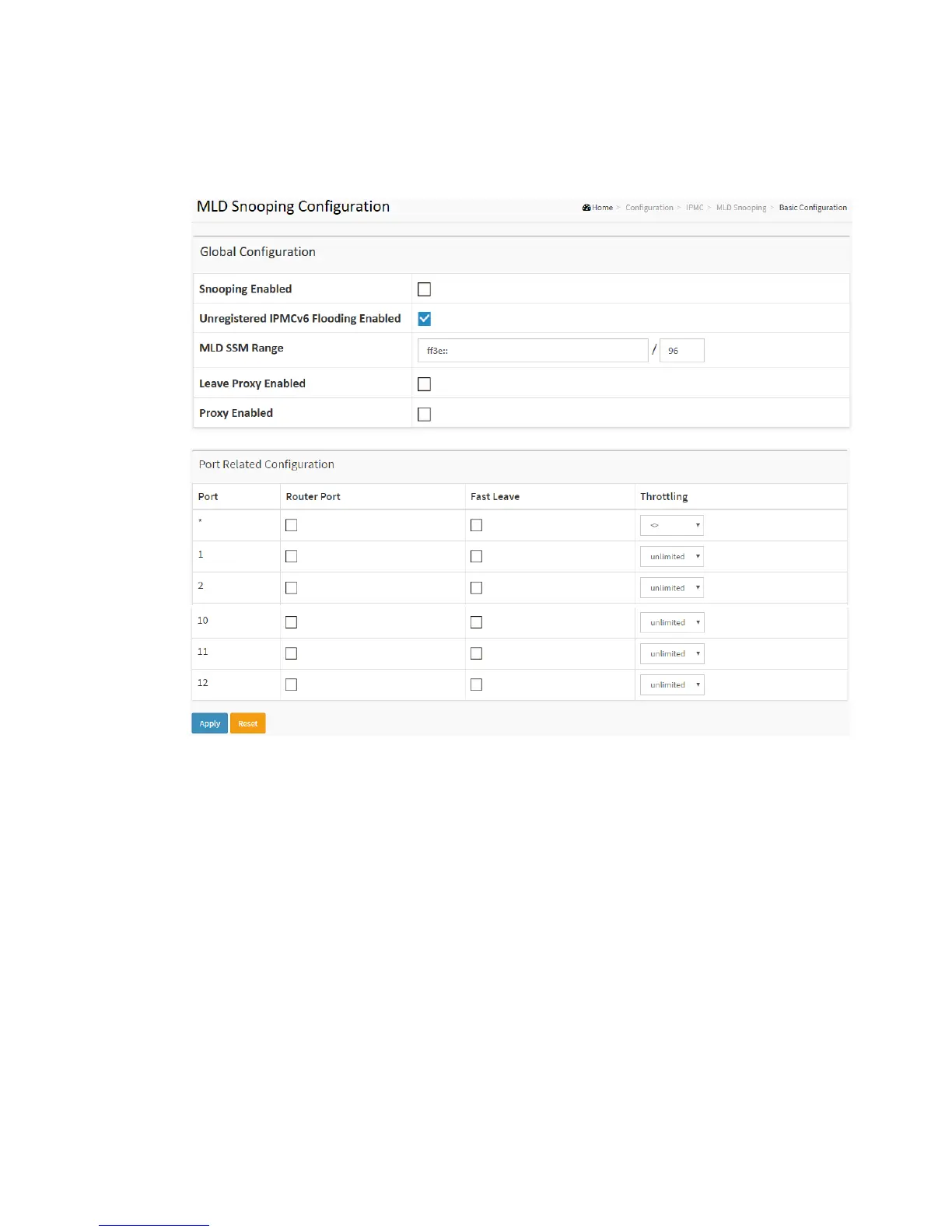 The flooding control takes effect only when MLD Snooping is enabled.