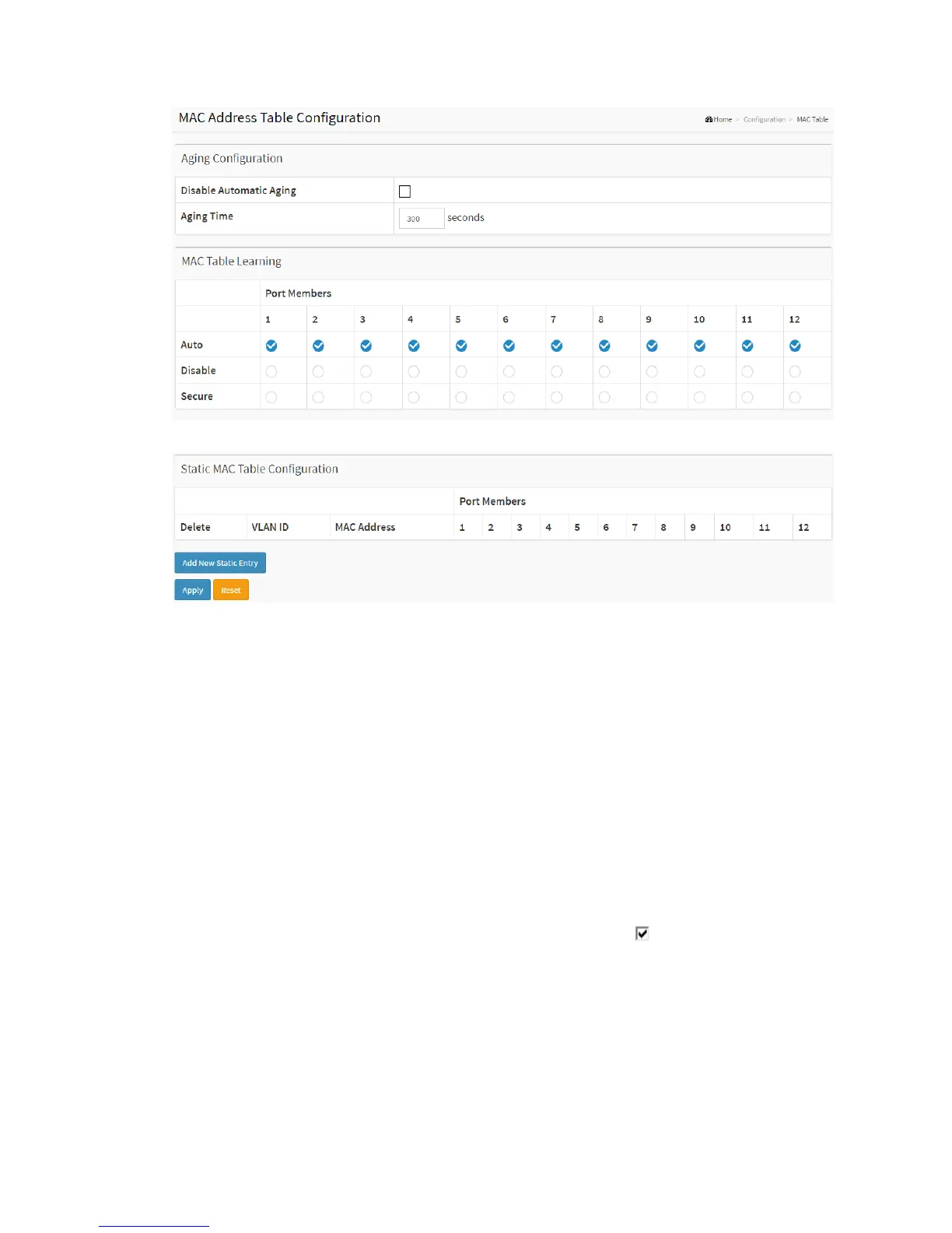 Disable the automatic aging of dynamic entries by checking Disable automatic