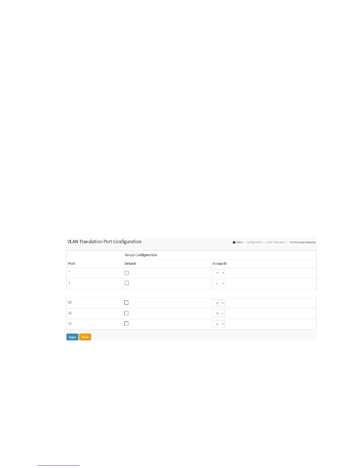 Group. This will enable all VLAN Translation mappings of that group (if any) on the selected