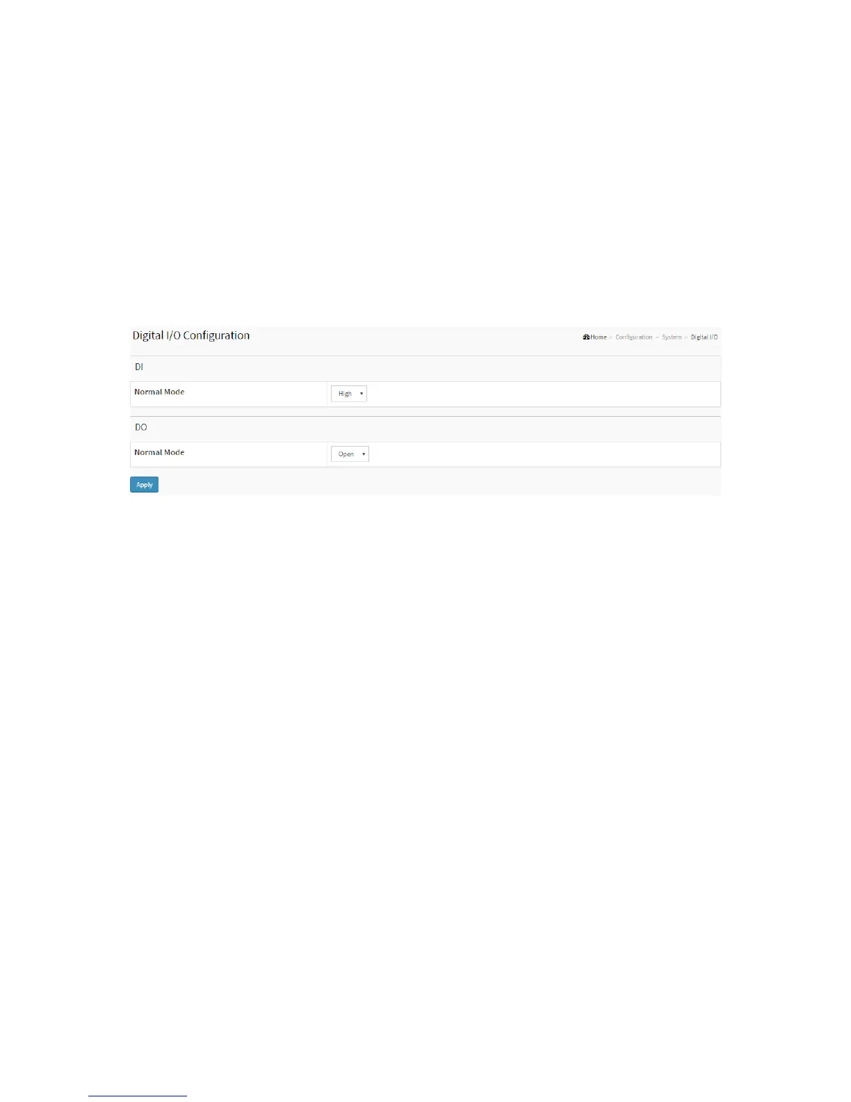 1. Click Configuration, System and Digital I/O.