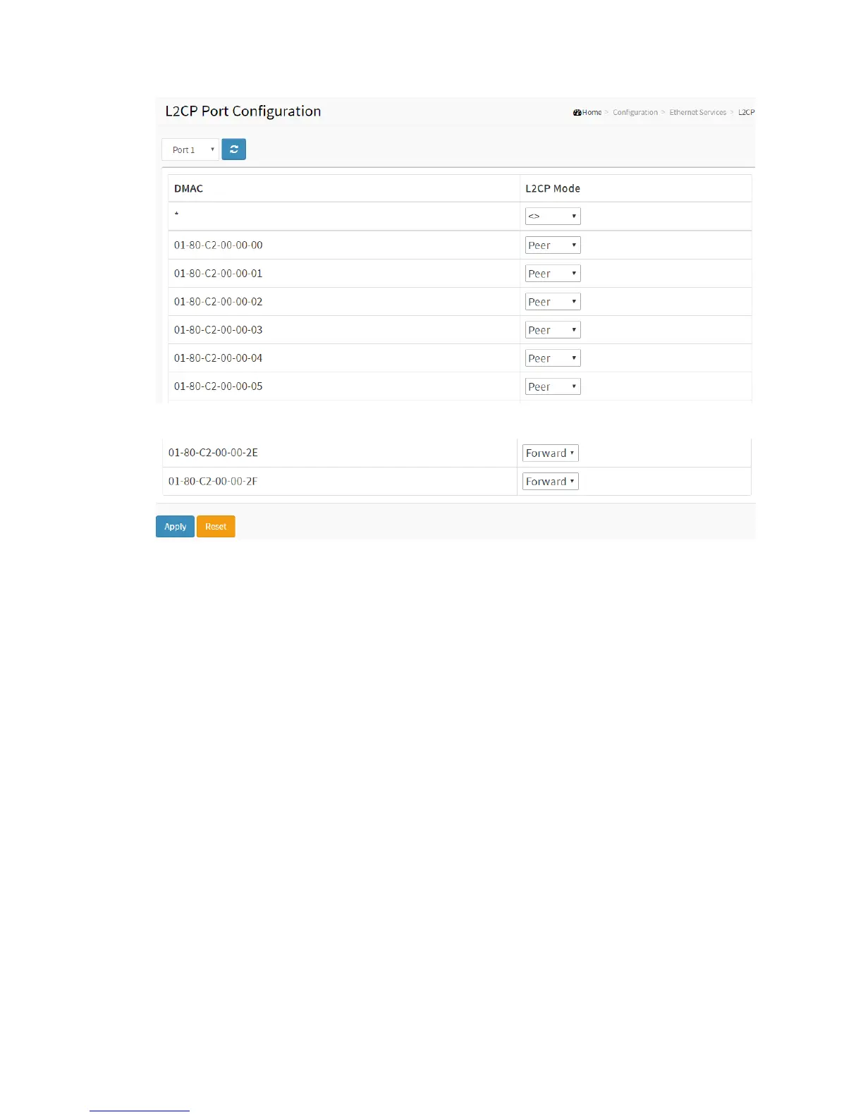 (01-80-C2-00-00-2X) MAC addresses for the settings contained in the same row.