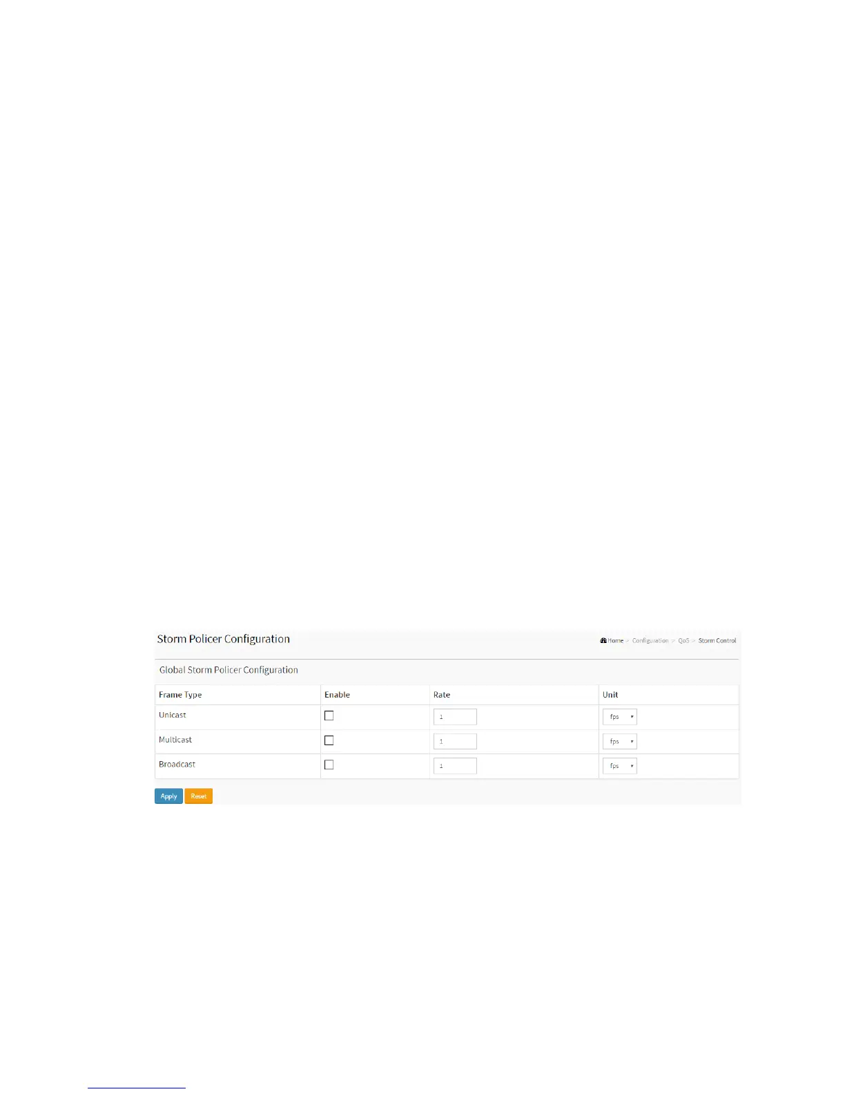 unicast storm rate control, multicast storm rate control, and a broadcast storm rate