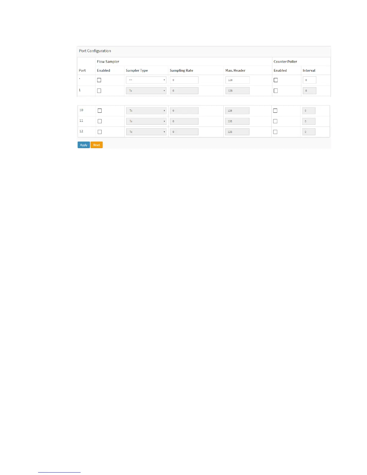 If sFlow is configured through SNMP, all controls - except for the Release-button -