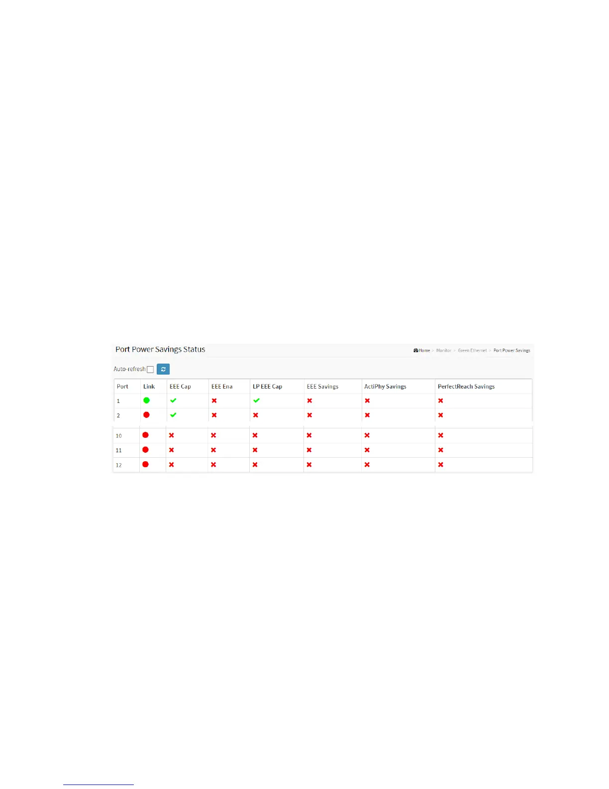 Shows if EEE is enabled for the port (reflects the settings at the Port Power Savings