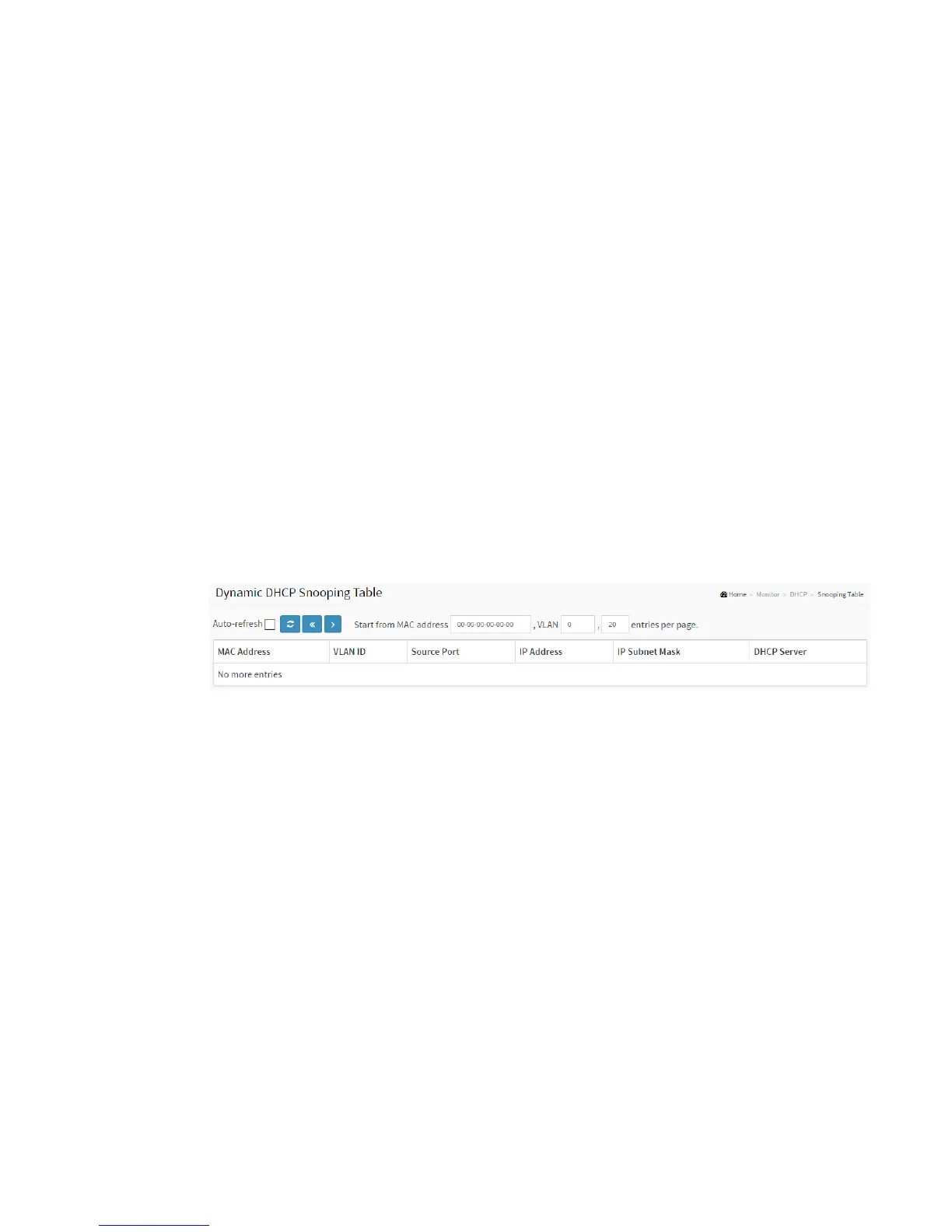1. Click Monitor, DHCP, and Snooping table