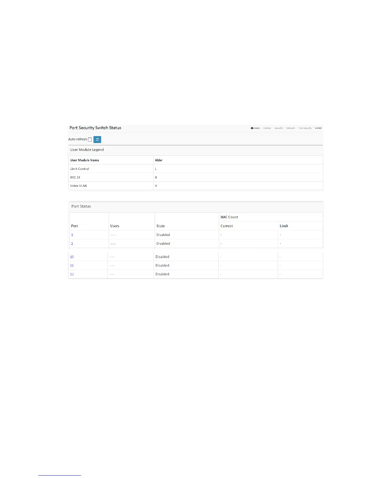Figure 3-6.2.1.1: The Port Security Switch Status
