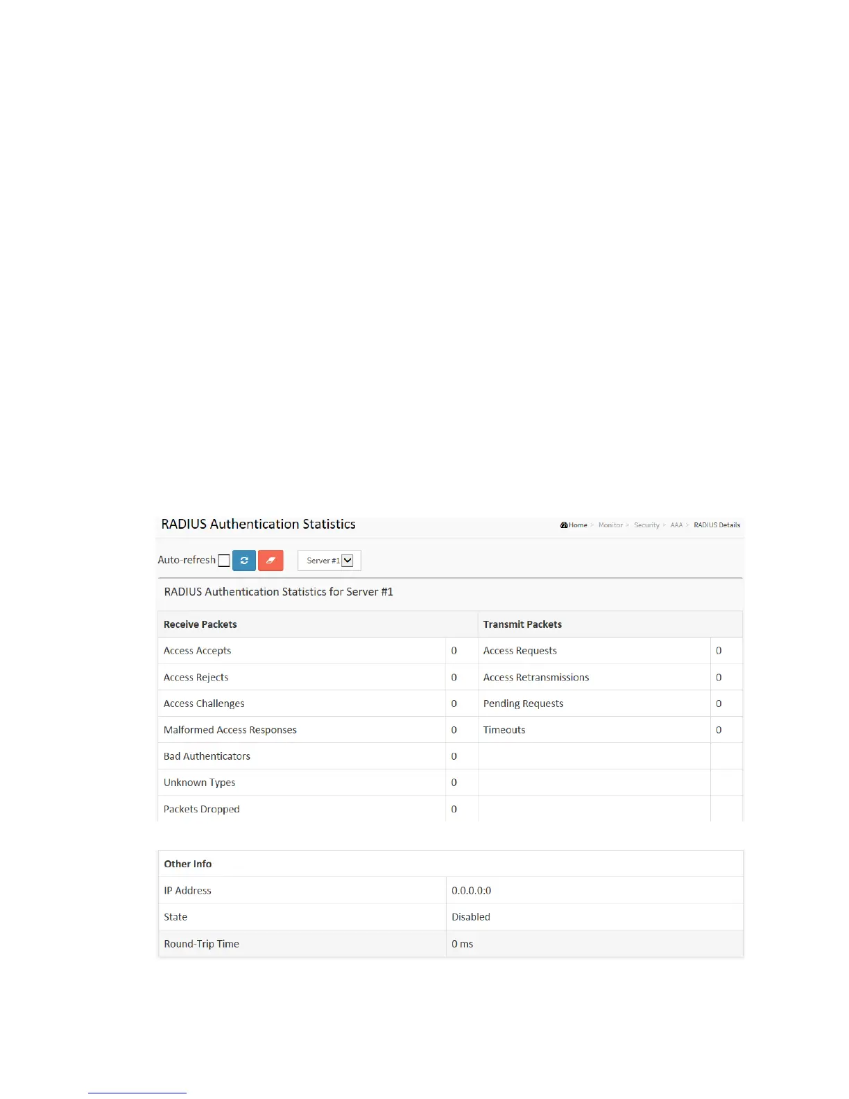 This section shows you a detailed statistics for a particular RADIUS server.