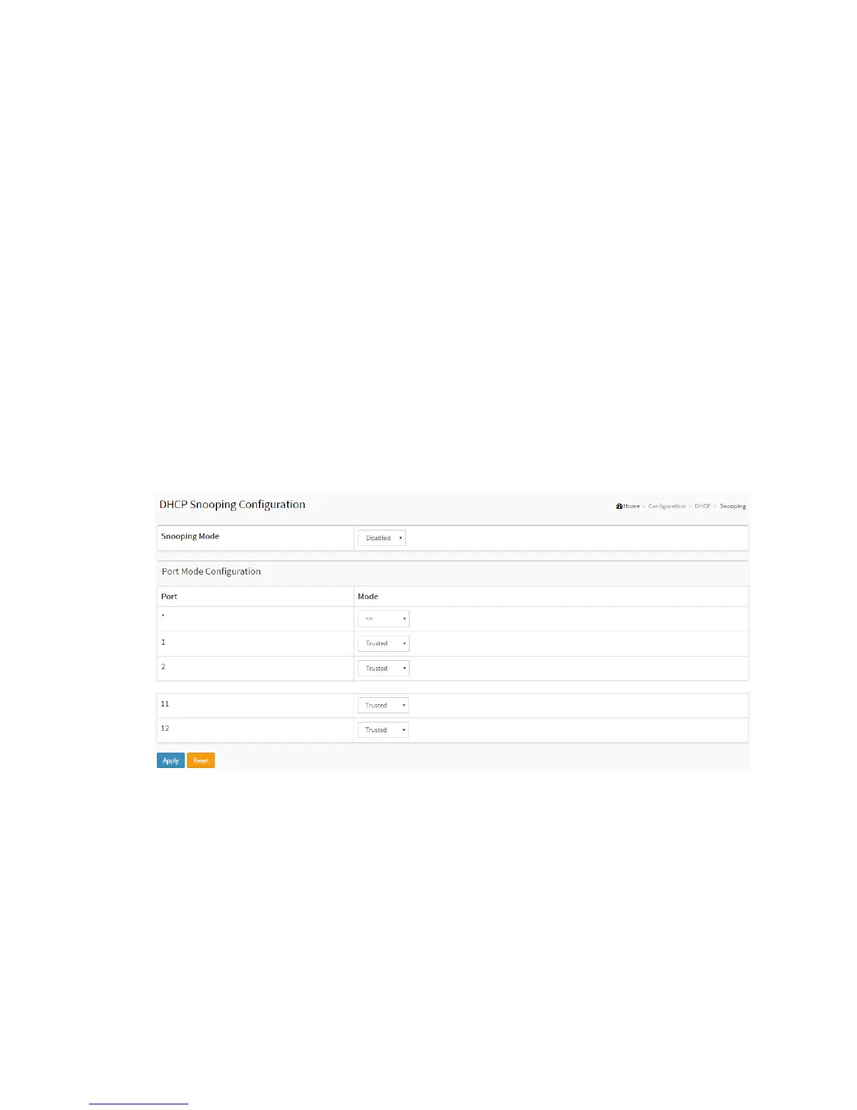 Enabled: Enable DHCP snooping mode operation. When DHCP snooping mode