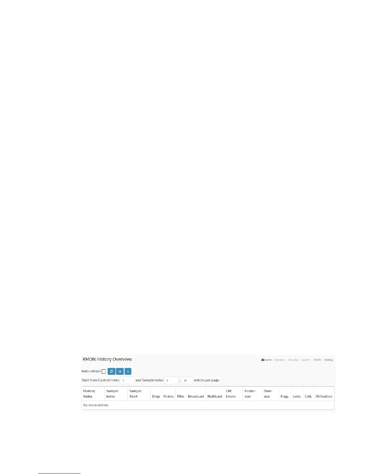 This section provides an overview of RMON History entries. Each page shows up to 99