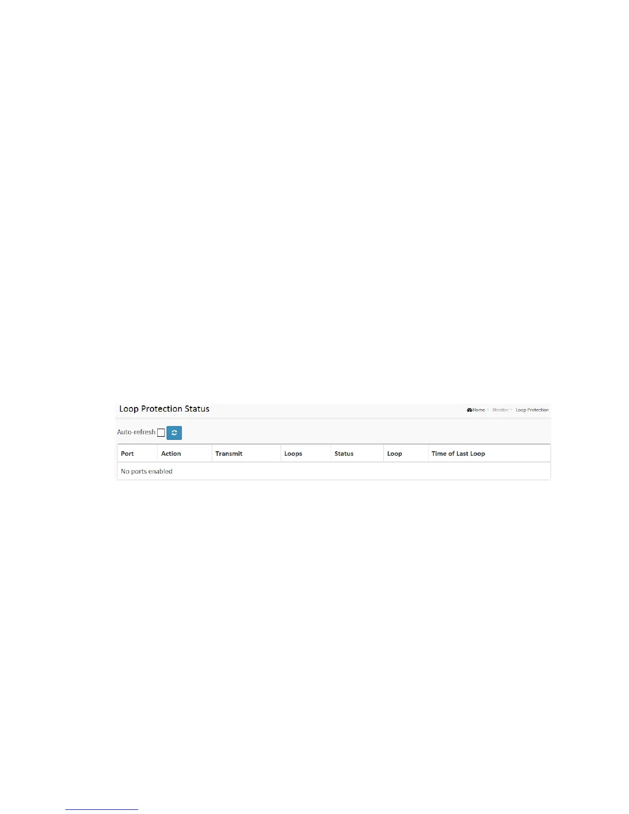 This section displays the loop protection port status the ports of the currently selected