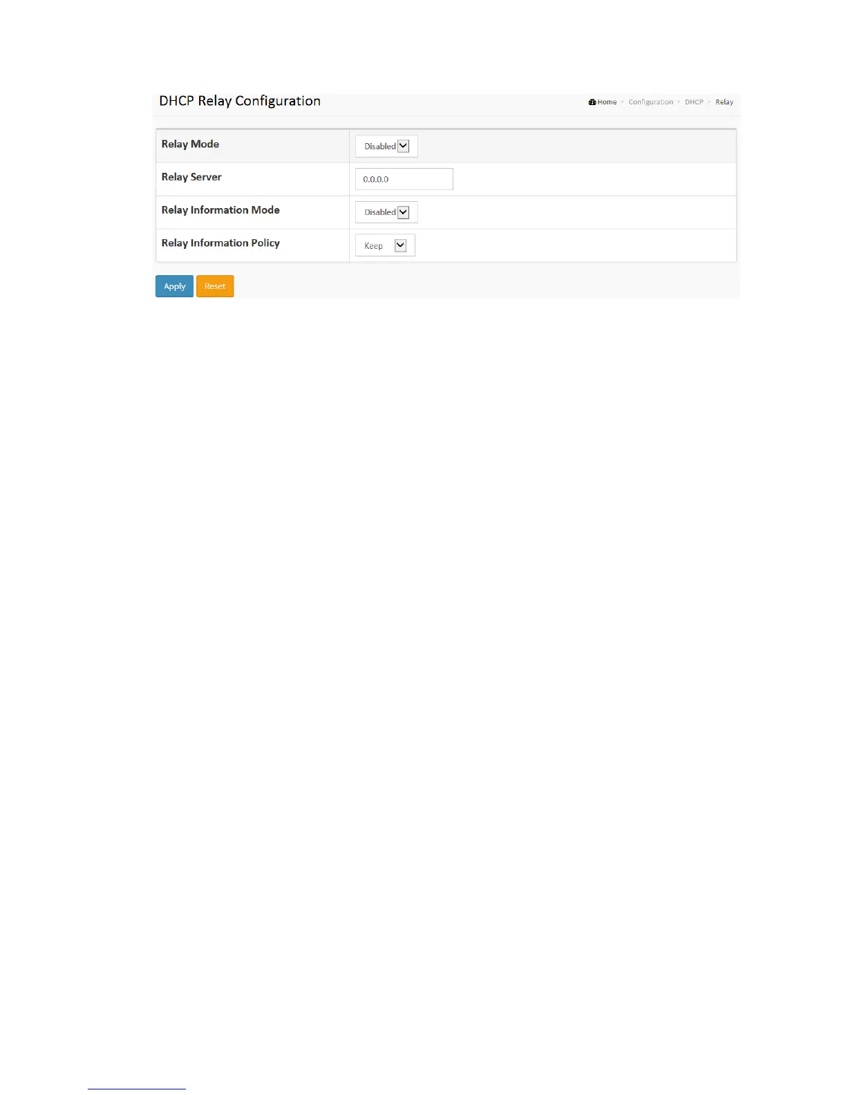 Enabled: Enable DHCP relay mode operation. When DHCP relay mode operation is