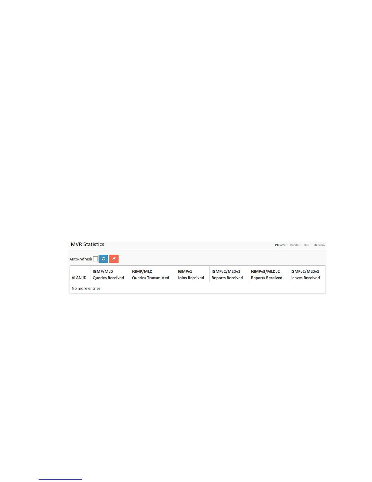 configured MVR on the switch. It provides the detail MVR Statistics Information