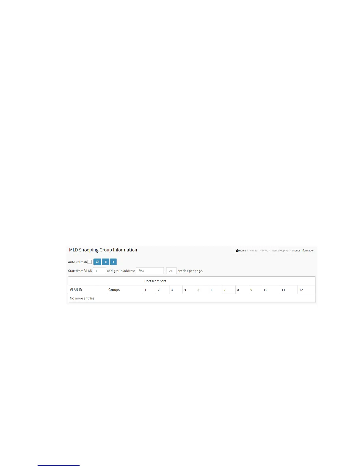 3. Click “Refresh” to refresh an entry of the MLD Snooping Group Information.