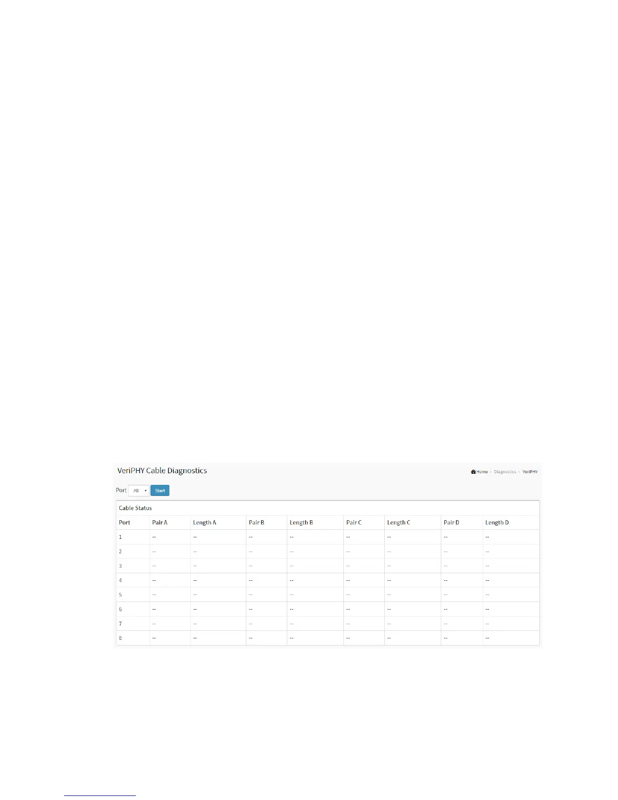To configure a VeriPHY Cable Diagnostics Configuration in the web interface: