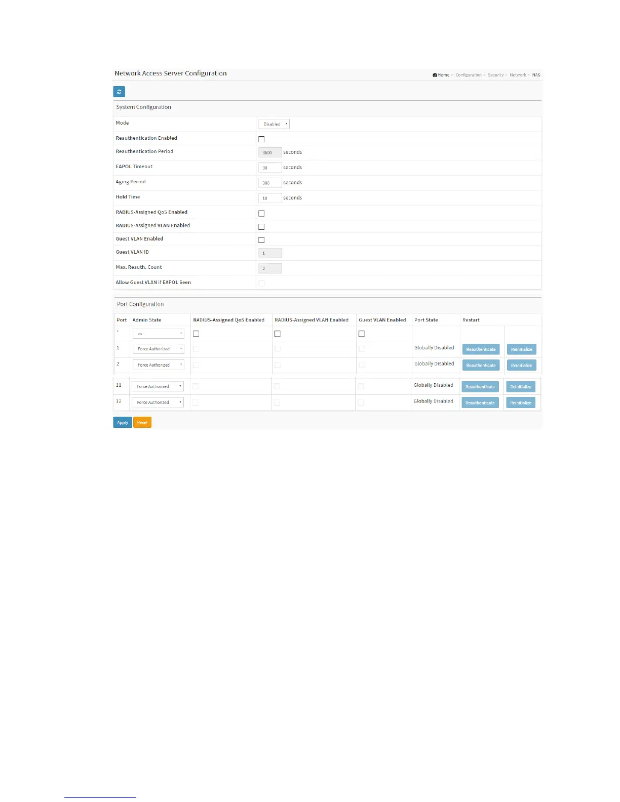Indicates if NAS is globally enabled or disabled on the switch. If globally disabled, all