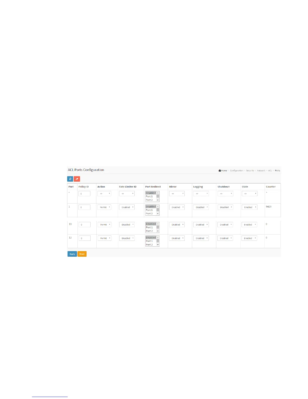 Figure 2-5.2.3.1: The ACL Ports Configuration