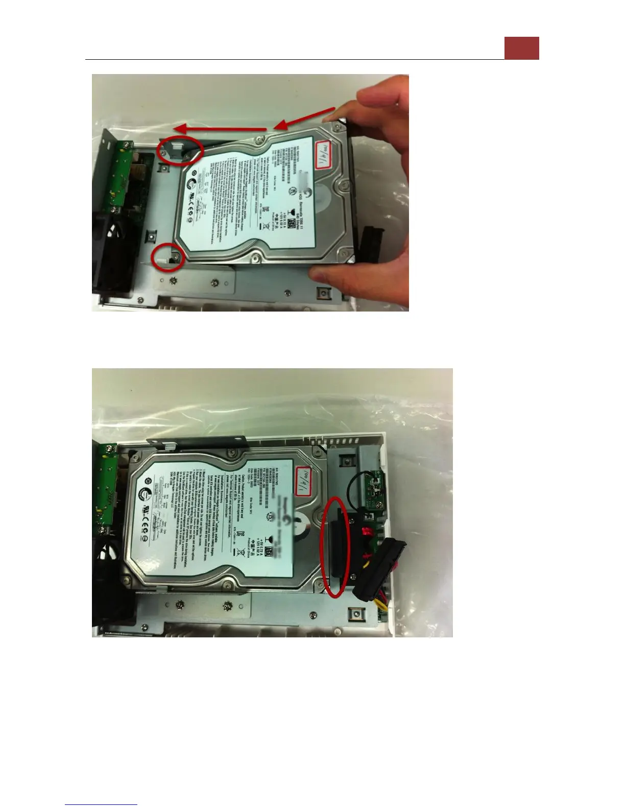 Install the bottom HDD by slide it in to the tray diagonally to avoid the