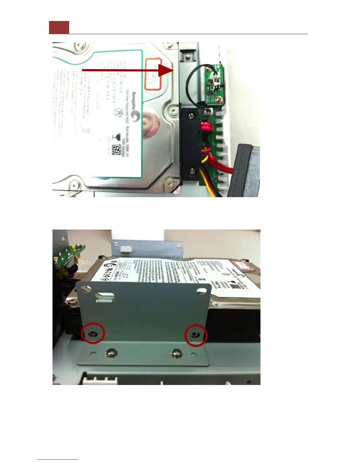 Make sure the screw holes on the HDD are aligned with the ones on