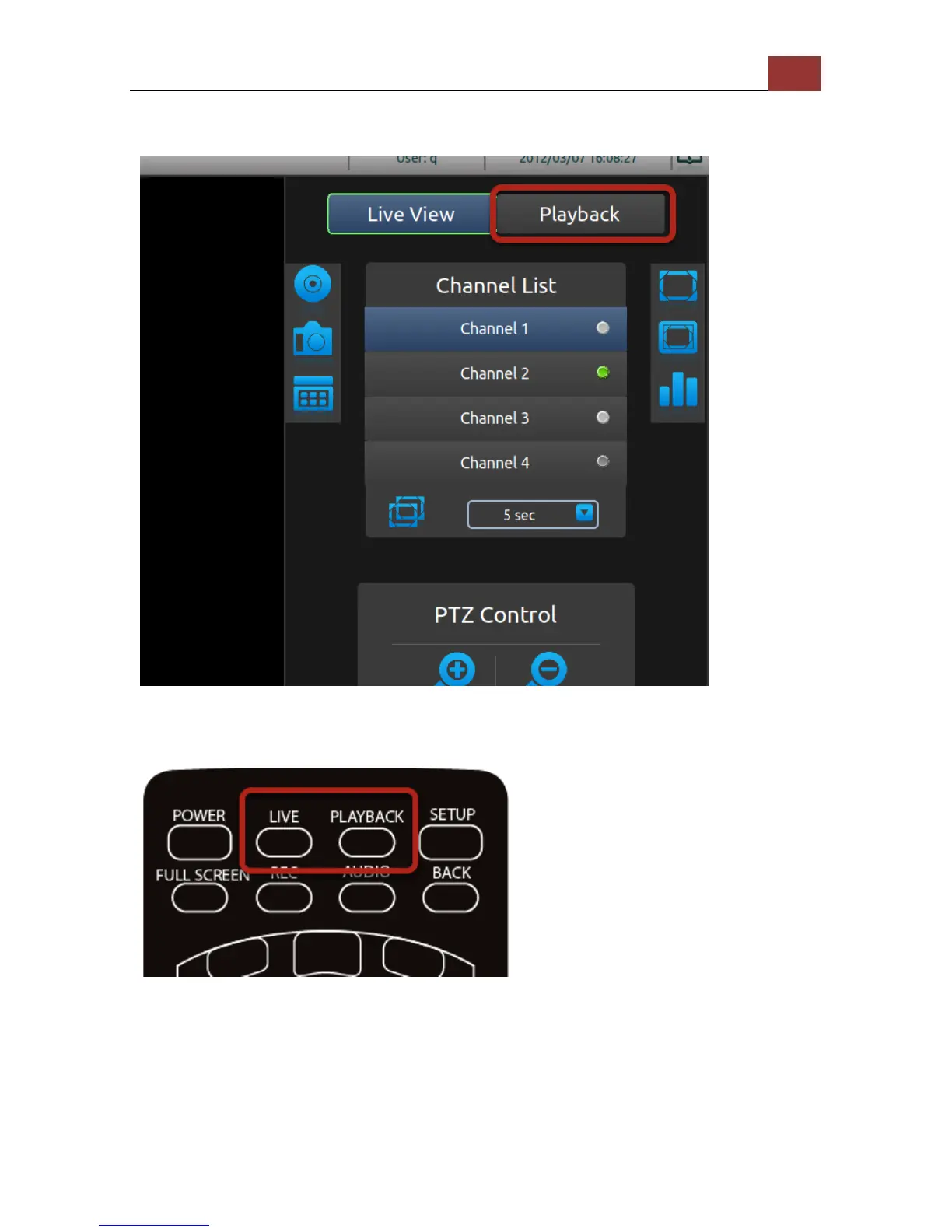 To switch to Playback, move the selection focus to the Playback button