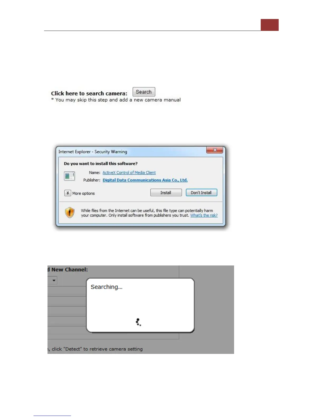 Click the “Search” button to perform the camera search.