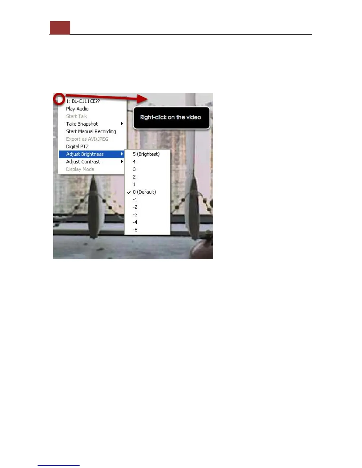 You are able to adjust brightness of the live video from the right-click