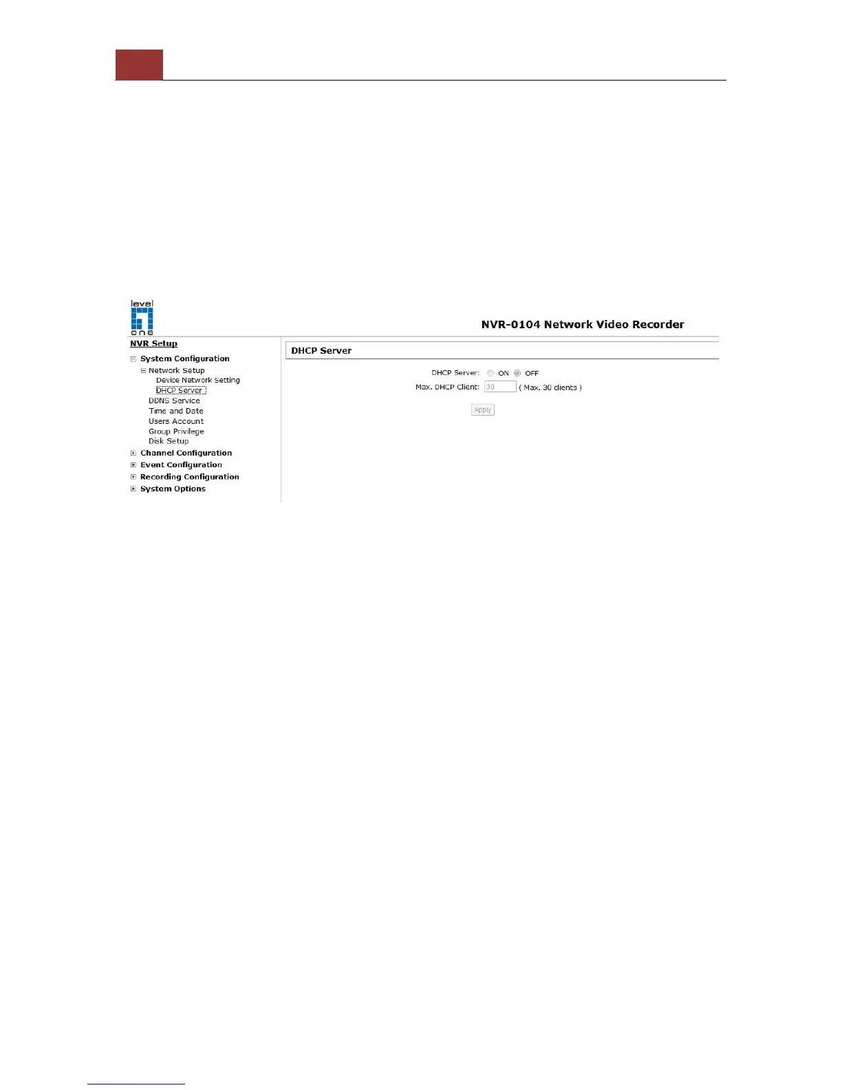 4. If the connection type is "DHCP Client", the DHCP server function is