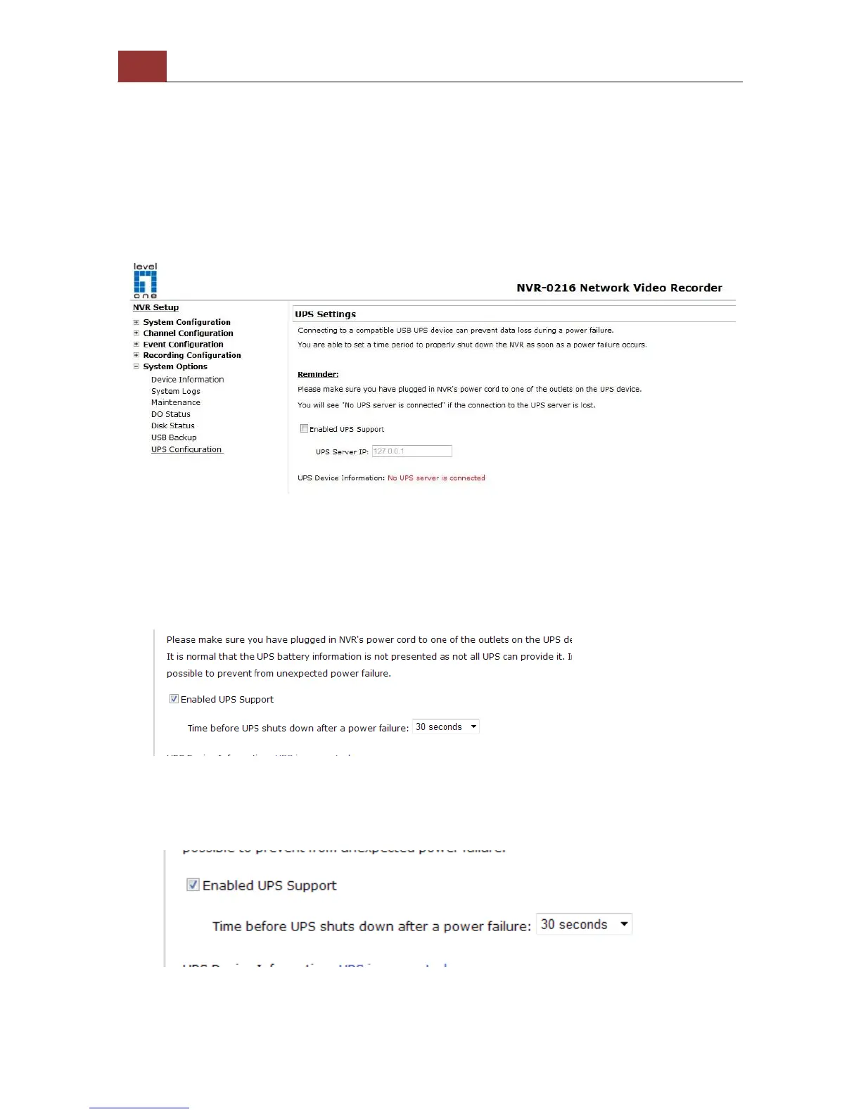 3. Go to “NVR Setup” >> “System Options” >> “UPS Configurations”,