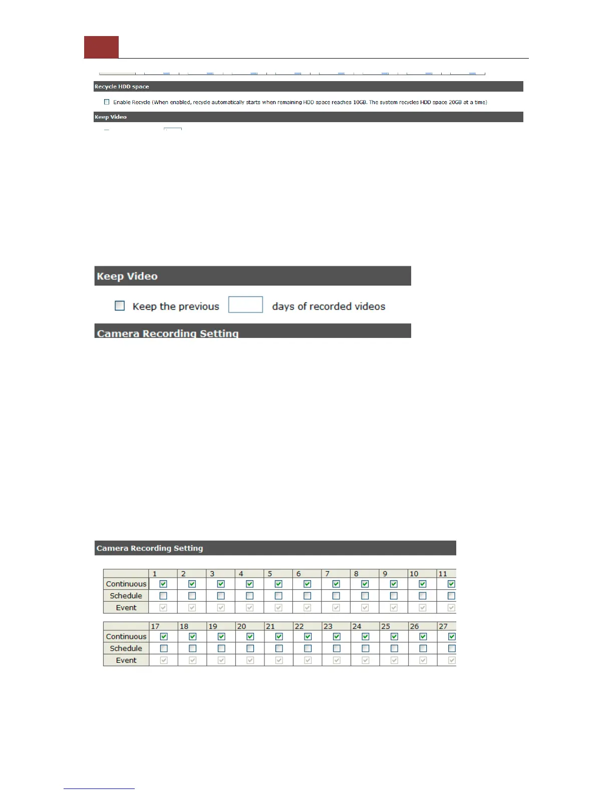 The HDD space recycle function is turned on by default. You can