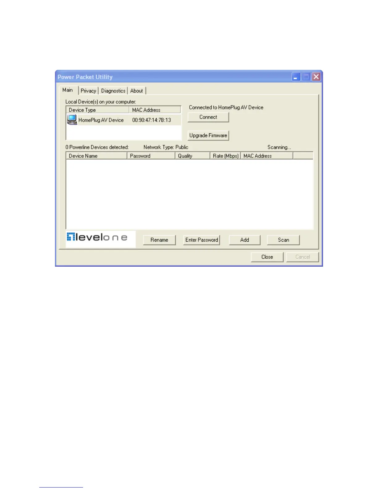 7. Once installation is completed, run the PLI-2040 utility program. The first screen (Network Tab) will display in-