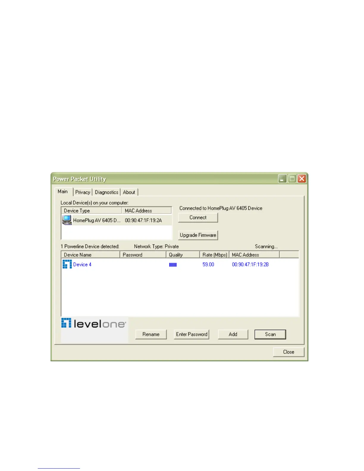 same device. Once connected to the local device, the utility will automatically scan the power line