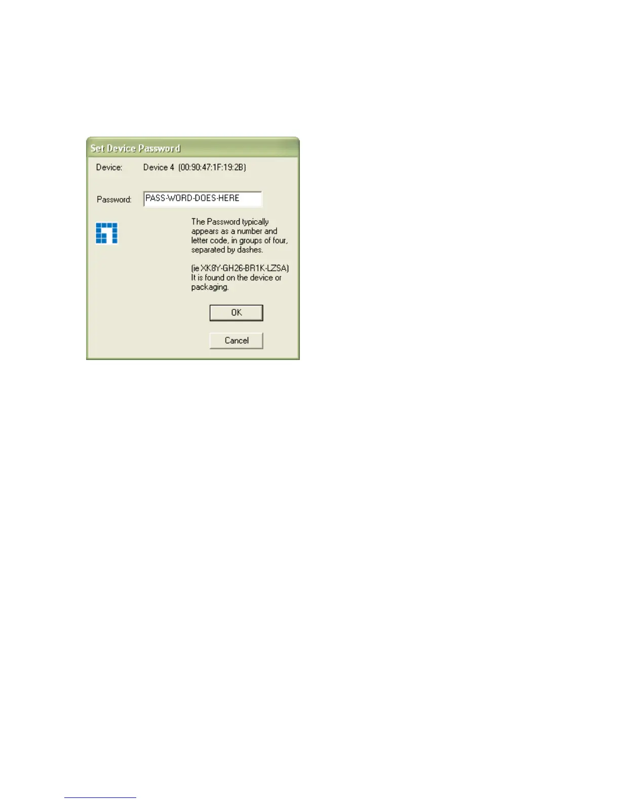 password of the device. A dialog box will appear as shown below in Figure 3-4. The dialog box