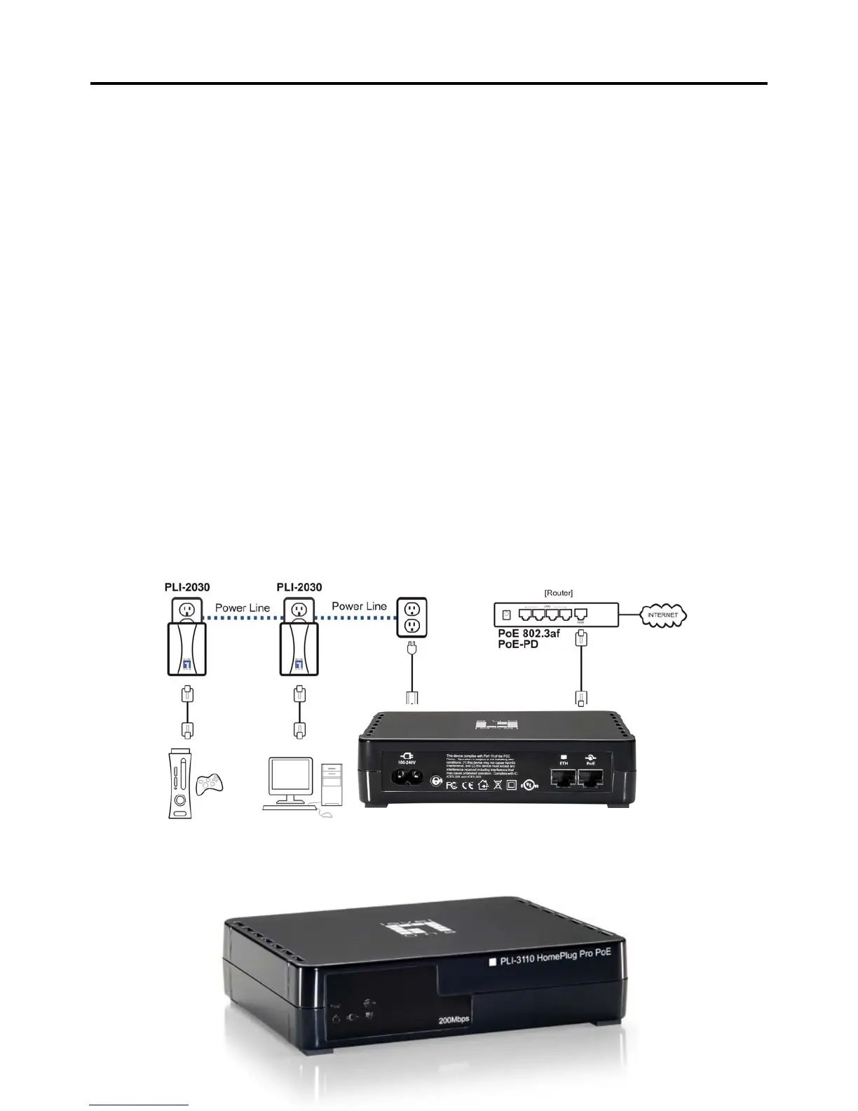 the Powerline network and at the same time, supply DC power to the PoE device. HomePlug Pro PoE operates