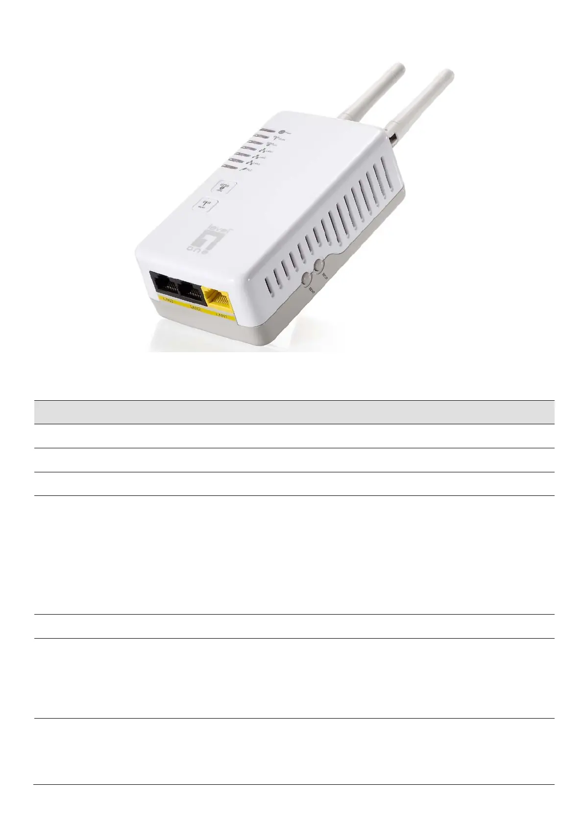 RESET Press this button for less than 2 seconds to start to reset the powerline settings to its