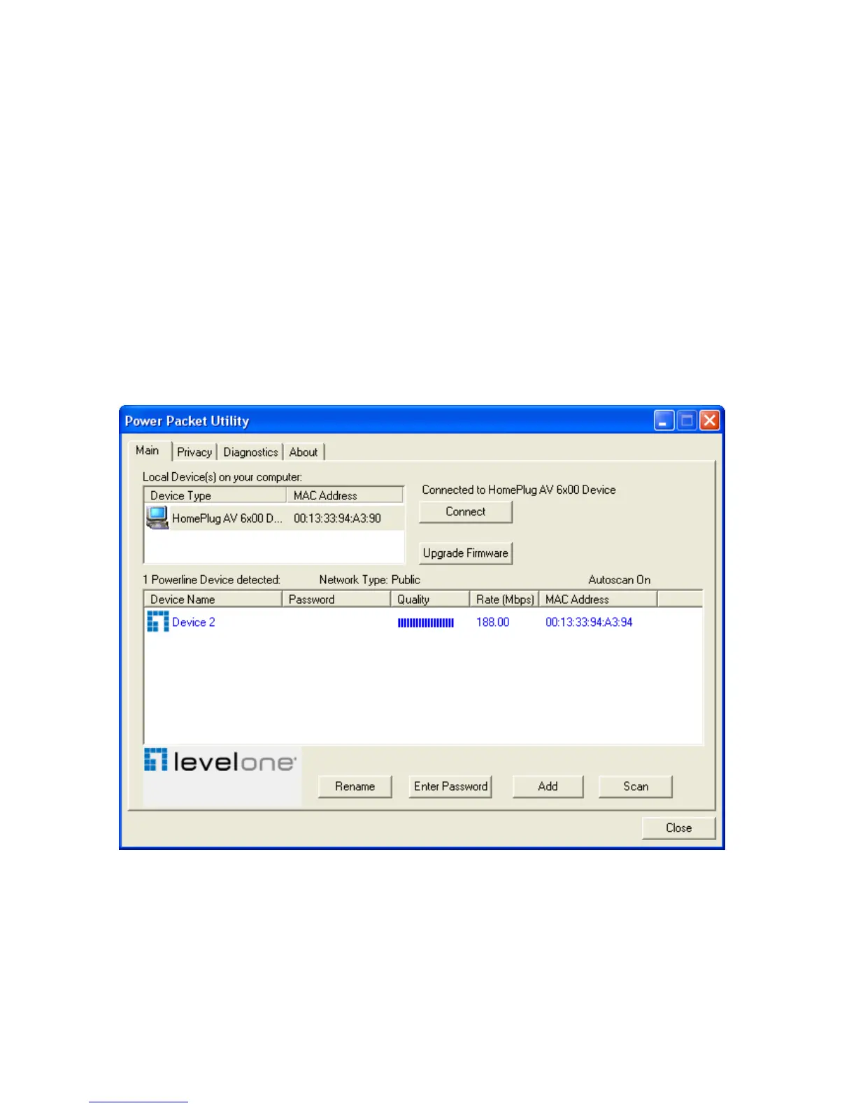 when the utility is running.The top panel shows all local HomePlug devices connected to the