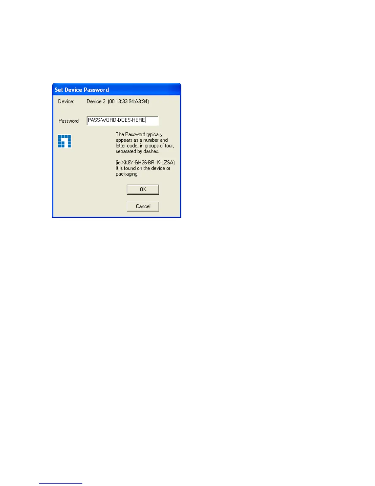 password of the device. A dialog box will appear as shown below in Figure 3-4. The dialog box