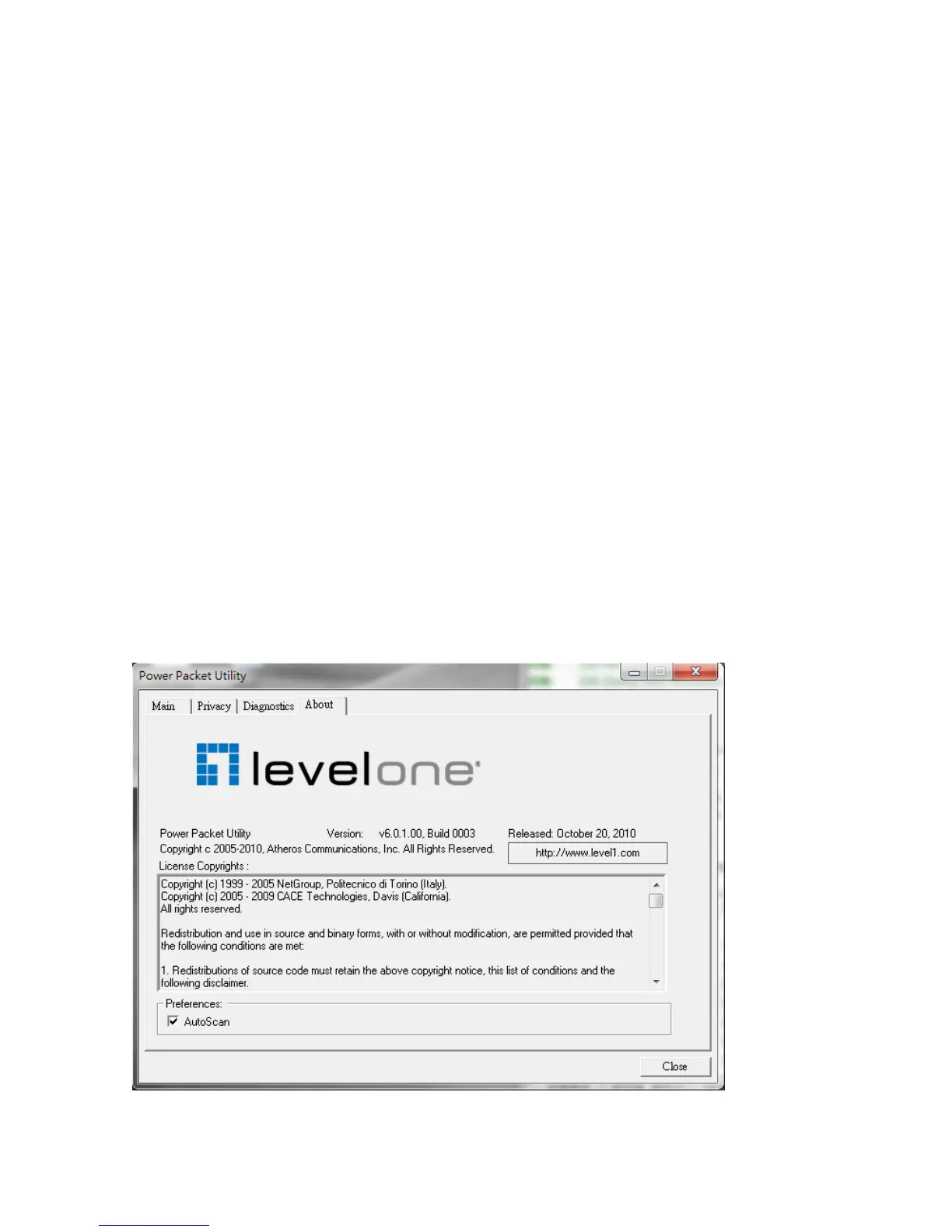 Figure 3-8: About dialog screen