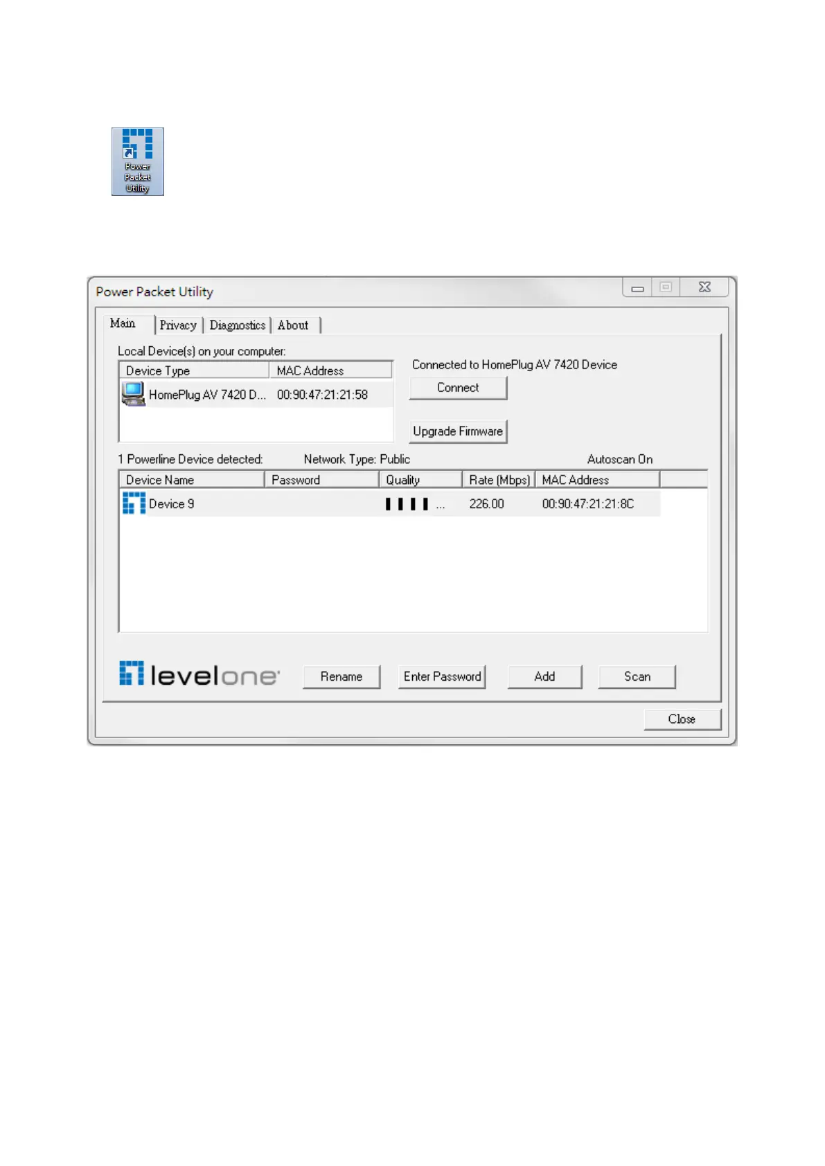 17. You can see your device working well. The top panel of the screen shot shows a Homeplug
