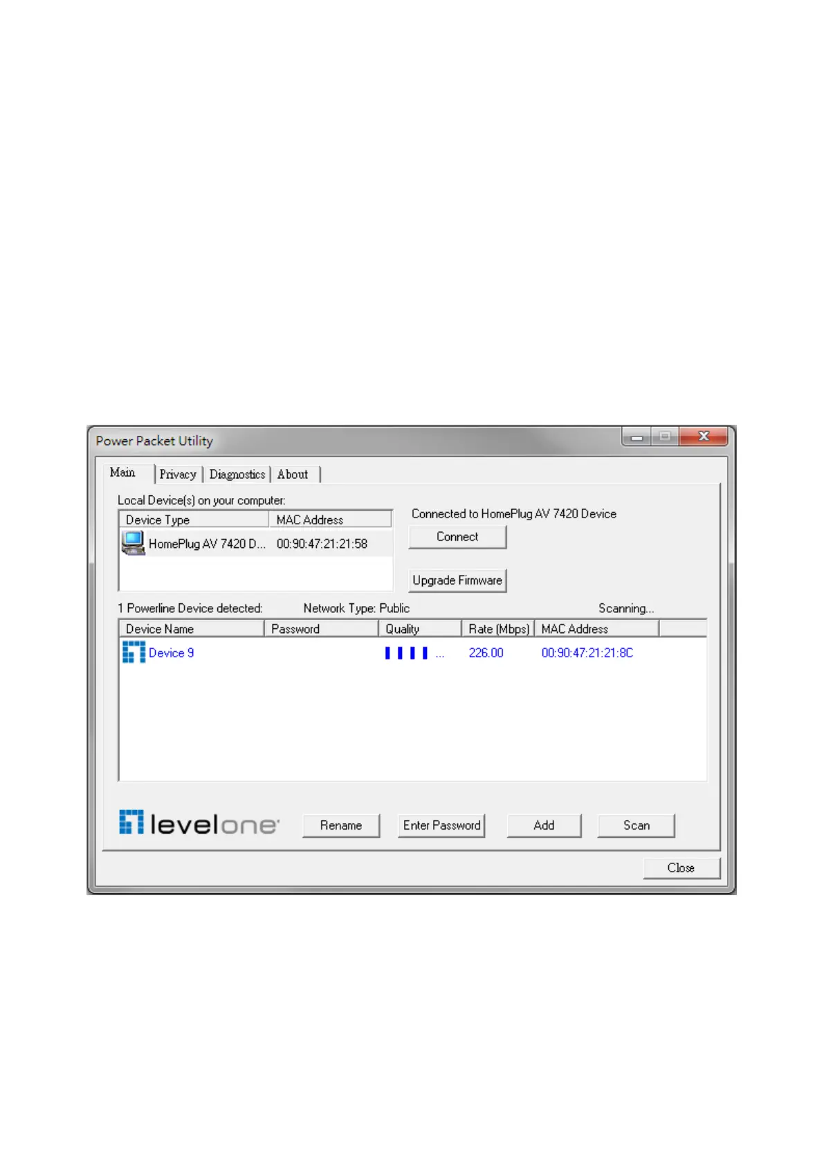 same device. Once connected to the local device, the utility will automatically scan the power line