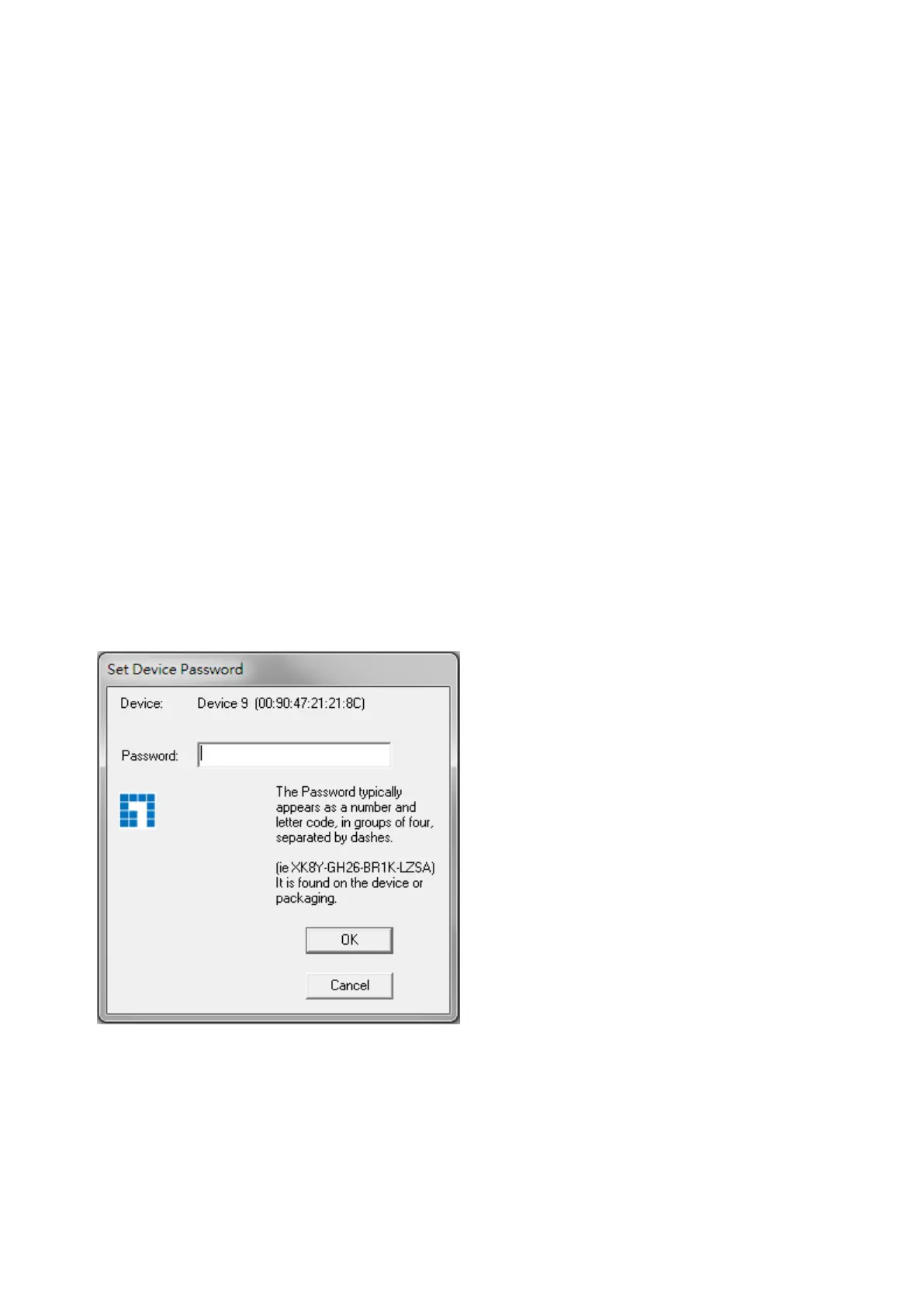 dialog box will appear as shown in Figure 3-3 to type the password. The selected device name is