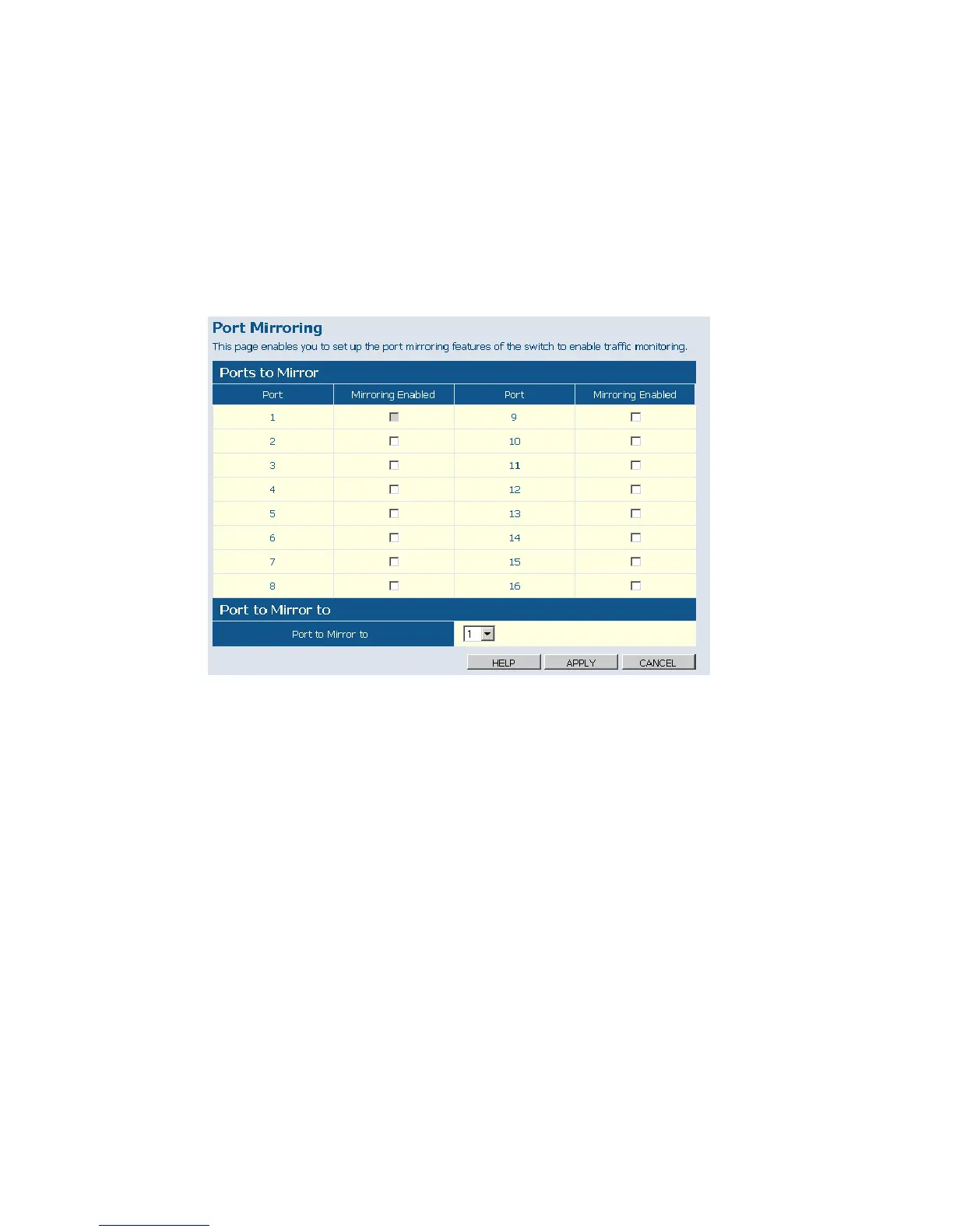 Web – Click PORTS, Port Mirroring.