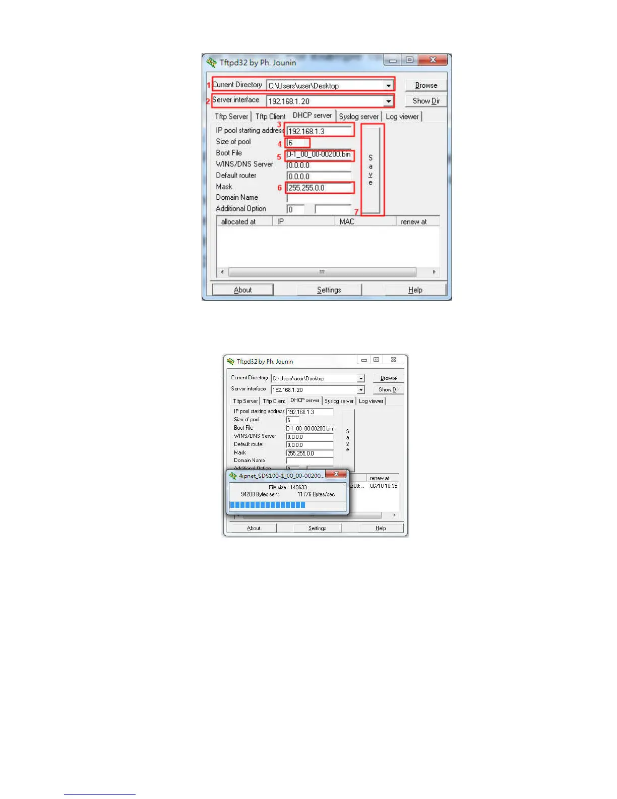 tart and connect to tftpd32 server set in Step3 as a DHCP client, download the firmware and perform the