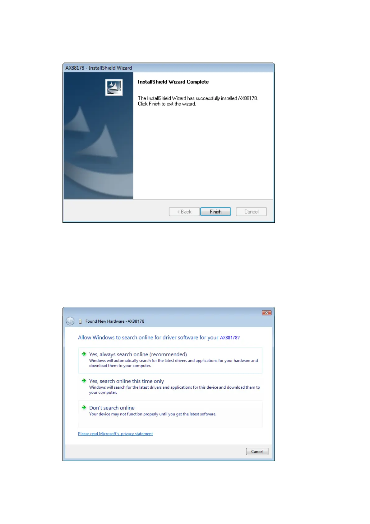 1. “Found New Hardware” ( 하드웨어 발견) 창이