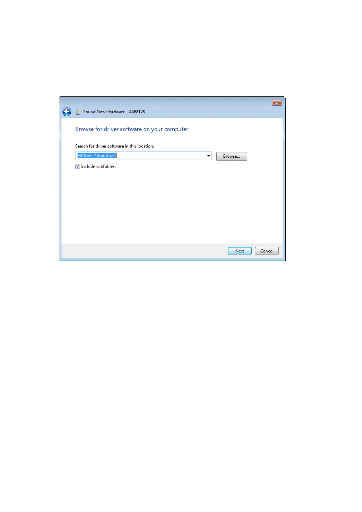 4. Insert the provided driver CD. Click the “Browse” button and