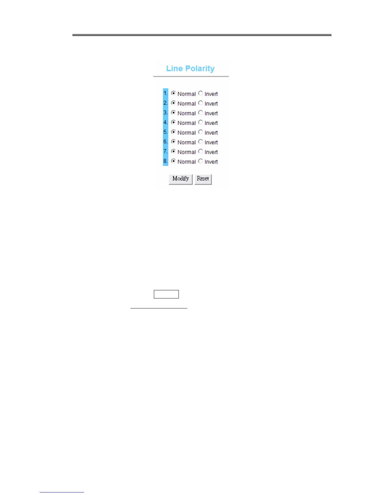 4.2.2.5 Line configure/ Line Polarity