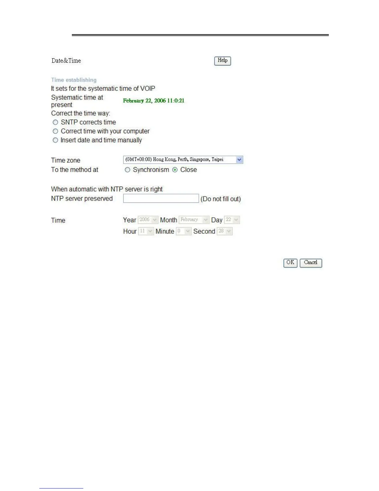 This page is used to setting the system time of VoIP gateway; it can define the correct time by