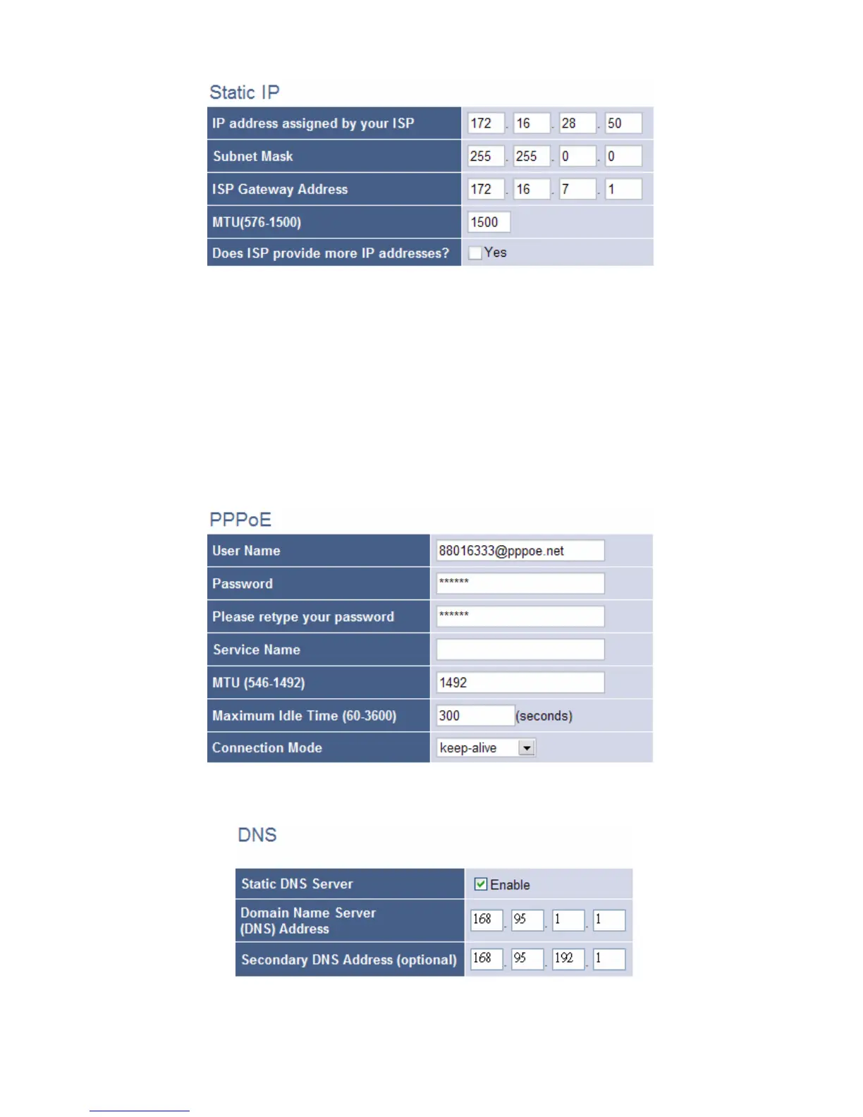 Please remember to setting the Primary and Secondary DNS IPs, supplied